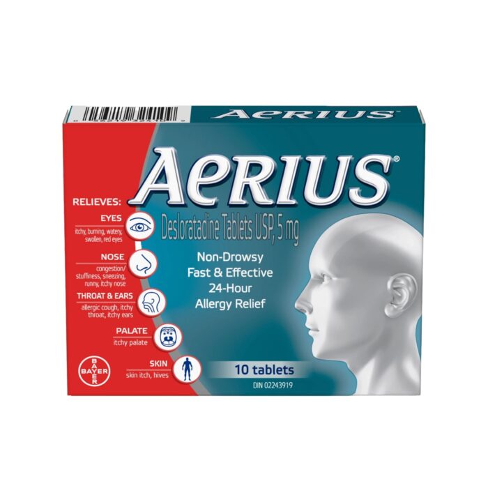 AERIUS (5 mg desloratadine) is an antihistamine that delivers multi-symptom allergy relief for 24 hours.