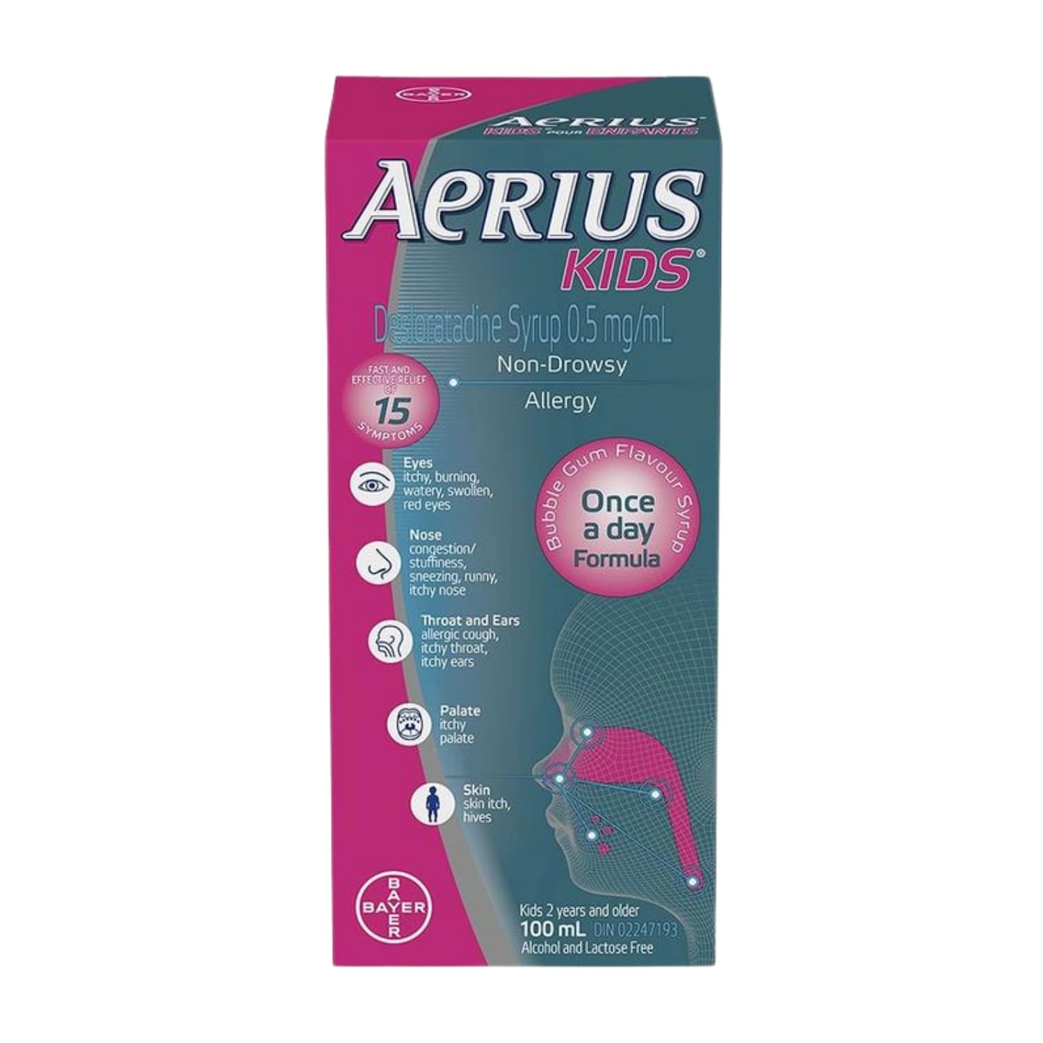 AERIUS Kids delivers multi-symptom allergy relief in an easy-to-swallow liquid with a great tasting bubble gum flavour.