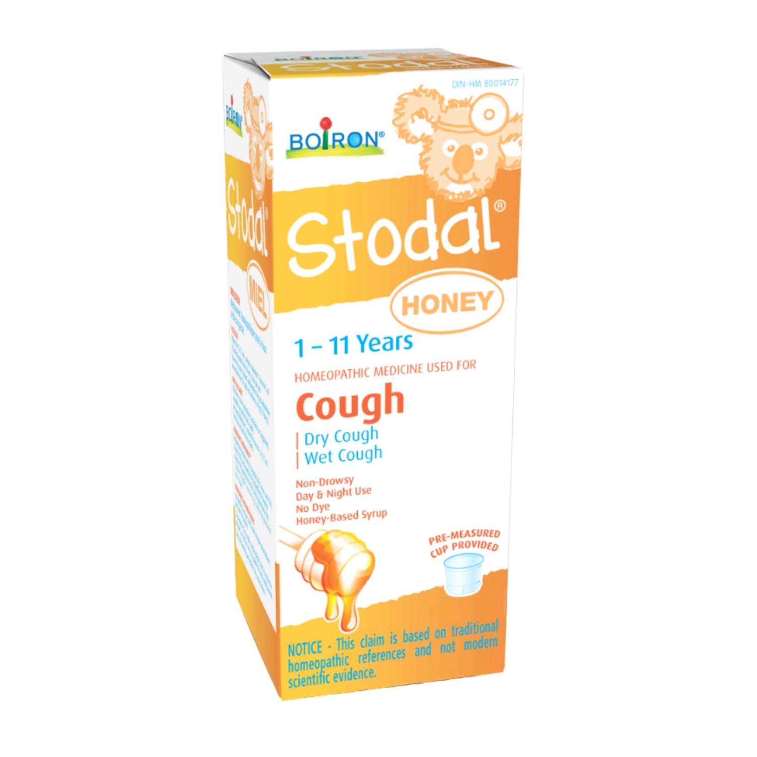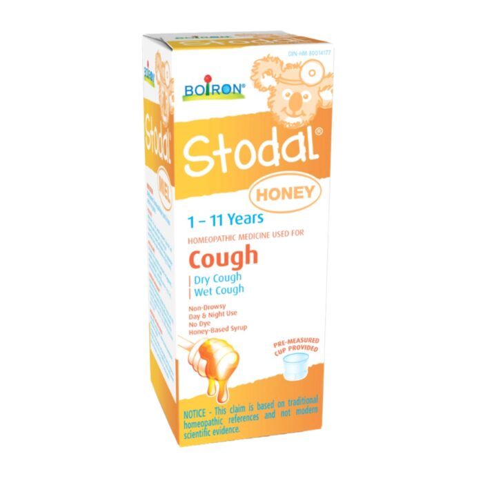 Homeopathic medicine used for dry or wet cough. Children’s Stodal Honey is a honey-based syrup.